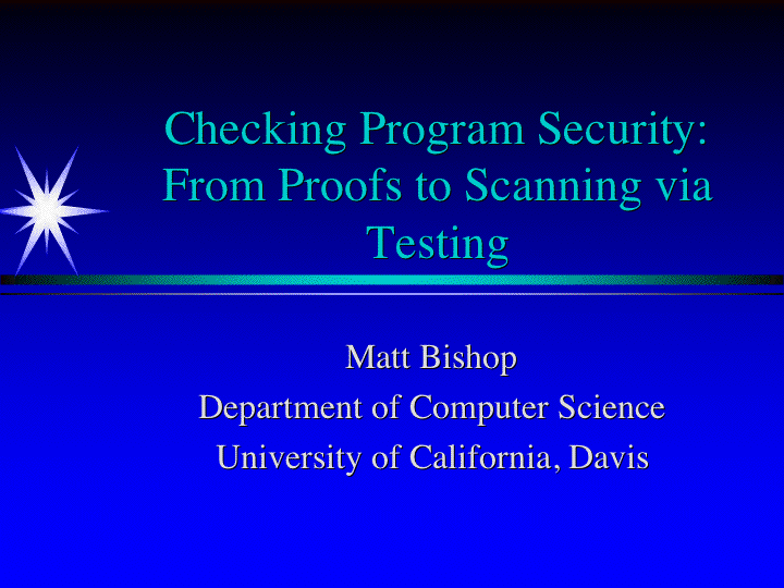 Checking Program Security: From Proofs to Scanning via Testing